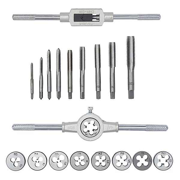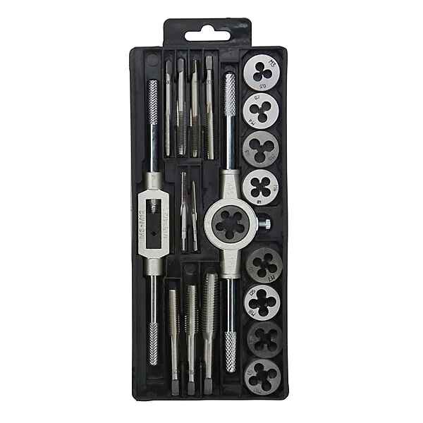 This 20-piece tap and die set is designed for cutting and repairing internal and external threads on screws, bolts, nuts, and other metal components. This comprehensive kit includes a variety of taps, dies, and essential tools for precision threading tasks. Ideal for automotive, mechanical, or general DIY projects, the durable steel components ensure long-lasting performance, helping you achieve professional results in metalwork and repairs.