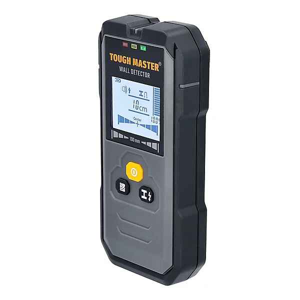 Before making a hole in the wall, it is important to use a high-performing stud finder to detect any concealed materials lurking beneath the surface. What better than TOUGH MASTER’s Wall Detector Electronic Stud Finder, which uses an intelligent, upgraded microprocessor chip for the highest possible sensitivity? This multi detector will rapidly and accurately find wood pipes, metal, and AC wires hidden in your walls, floors, and ceilings, making any tough job easy. The detector sensor features an impressive five scanning modes, detecting up to 38mm (Deep Mode) and 20mm (Exact Mode) for wood materials, 100mm for Ferrous Metal, 80mm for Non-Ferrous Metal (Copper), and 50mm for AC wires. It’s heavy-duty ABS plastic body makes the digital wall scanner extremely resistant to strong impact, making it less susceptible to scratches and markings, increasing the longevity of the product. What’s more, the TPE rubber covering makes the wall detector for drilling comfortable to use and allows you to hold it with a firm grip. This cable detector features a crystal clear LCD display and audible warnings to alert you when wiring, metals or wood is present, and comes with a compatible dry battery and carry case.